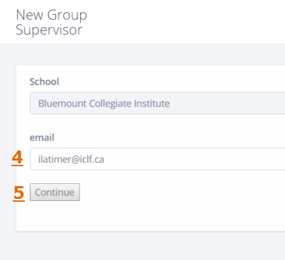 Note: This is the email address that serves (or will be used) as the user name in the Bourstad app for the group supervisor to be named.