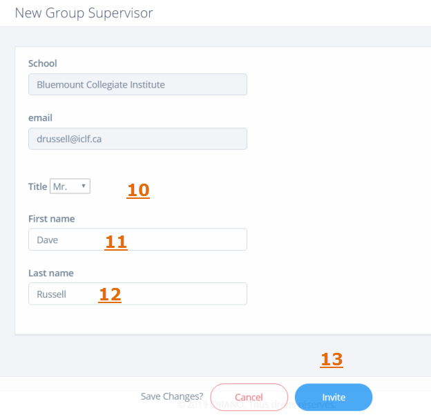 have an account in the Bourstad application.Figure 5. Steps 10 to 13 when the new group supervisor does not have an account in the