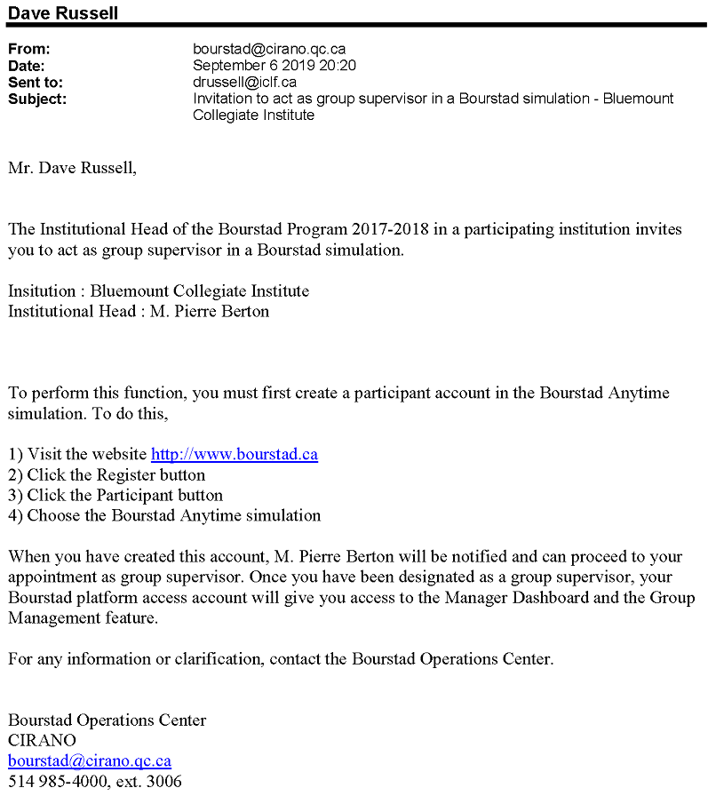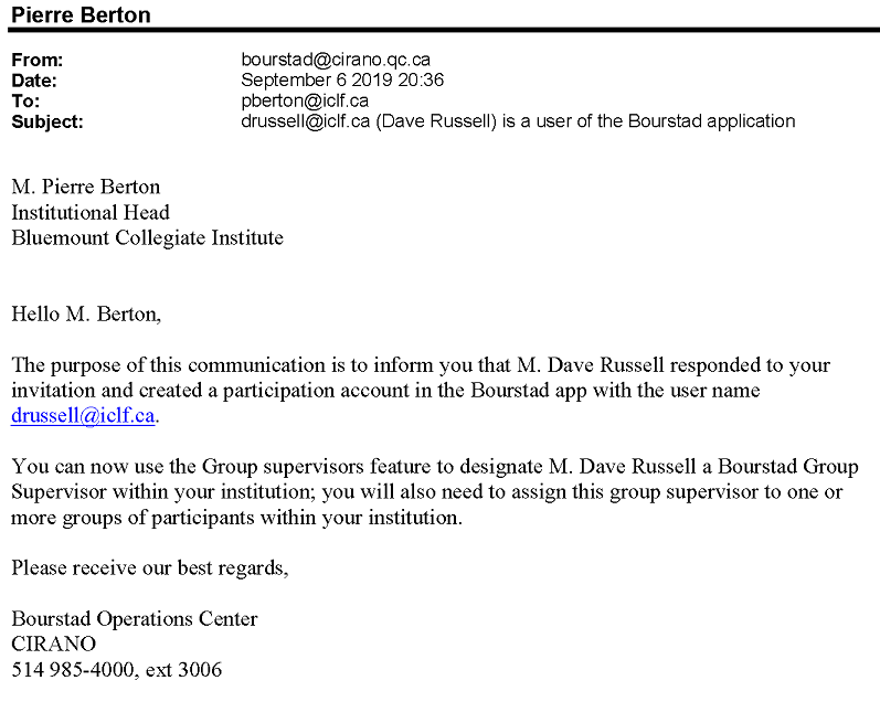 Figure 6. Email sent by the app to the person invited to become a group supervisor