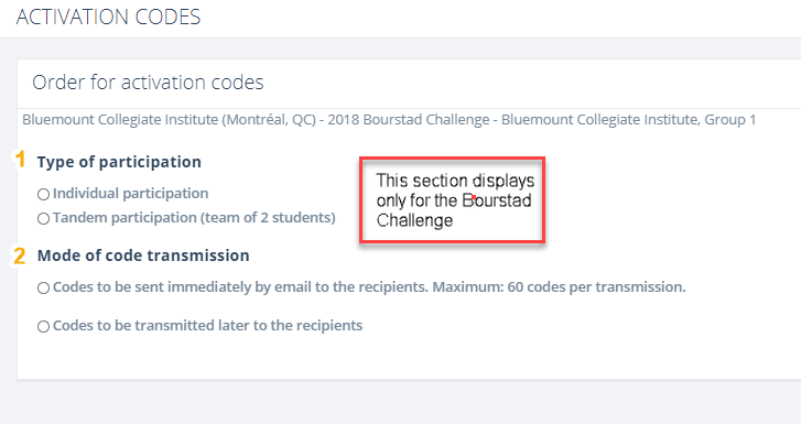 If the simulation concerned is the Bourstad Challenge, the form also includes a section entitled "Type of participation" to choose between individual accounts and tandem accounts.