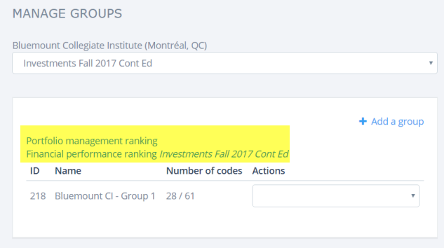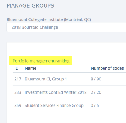 If the simulation is the Bourstad Challenge, you will see in the top left of the table a link to consult the portfolio management ranking of all the participants of the school at this annual competition.