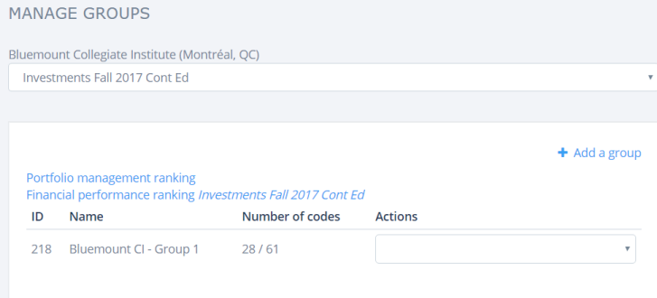 Manage Simulations table, Manage Groups action When this action in the Manage Simulations table is selected, it displays the Manage Groups table for this simulationFigure 1. Manage Groups table displayed from the Manage Simulations table
